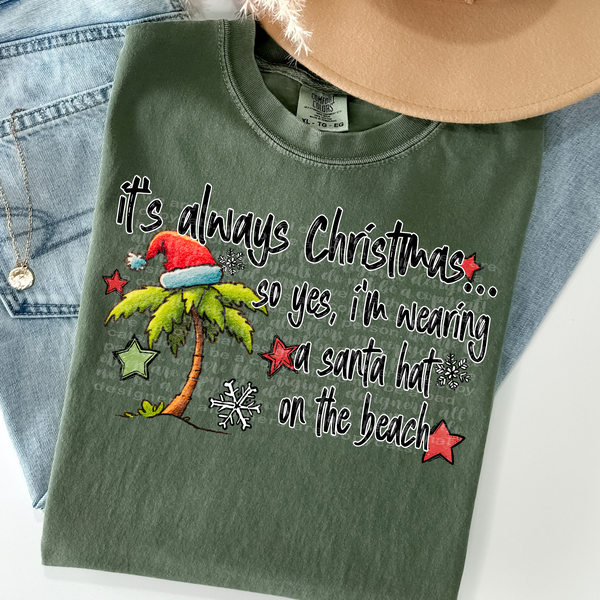 It's always Christmas, so yes, I'm wearing a Santa hat on the beach (TTD) DTF transfer