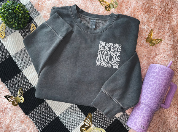 The God who made you is stronger than the demon trying to break you BLACK SWD DTF transfer
