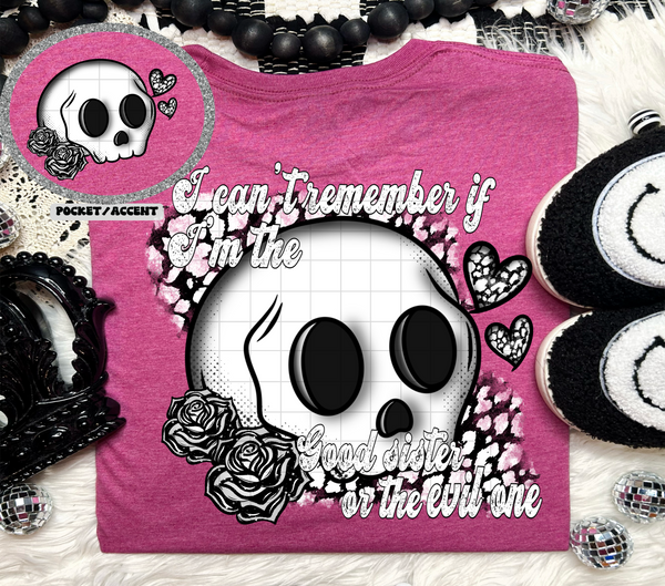 I can't remember if I'm the good sister or the evil sister BACK (Linda) 106868 DTF transfer