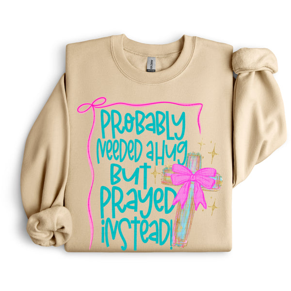 Probably needed a hug but prayed instead DTF transfer