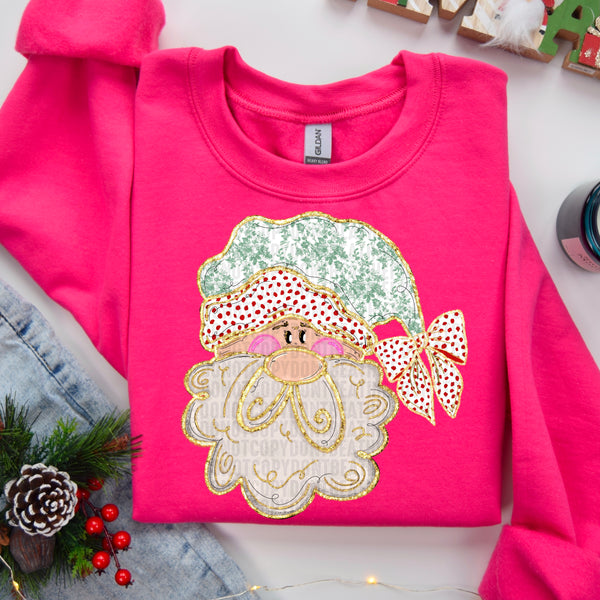 Santa dotted bow green hat DTF transfer