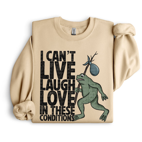 I Can't Live Laugh Love In These Conditions Frog Black Font 104332 DTF transfer