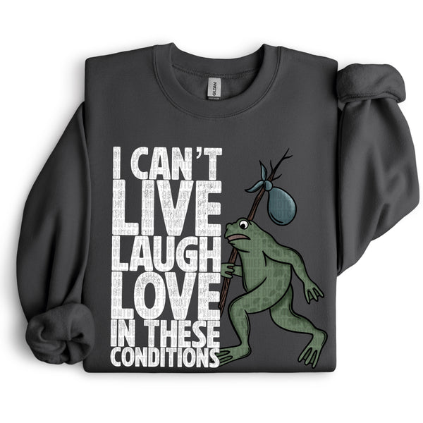 I Can't Live Laugh Love In These Conditions Frog White Font 104333 DTF transfer