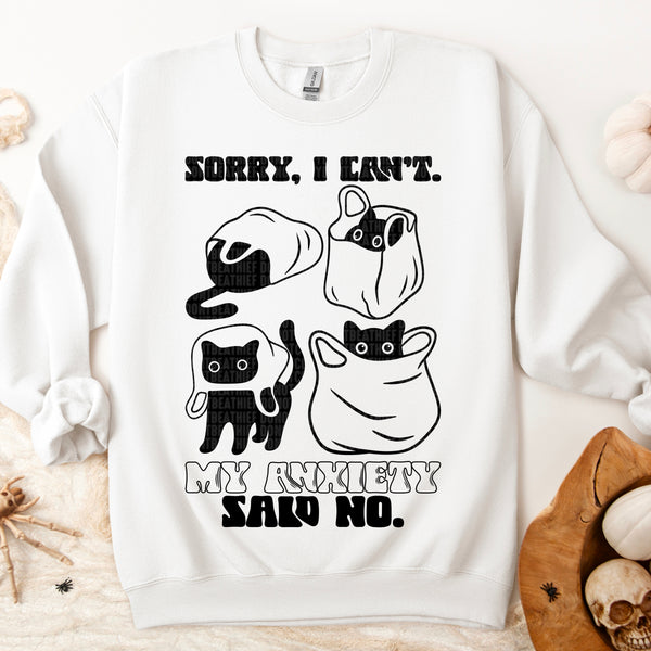 Sorry I Can't My Anxiety Said No Cat 104311 DTF transfer