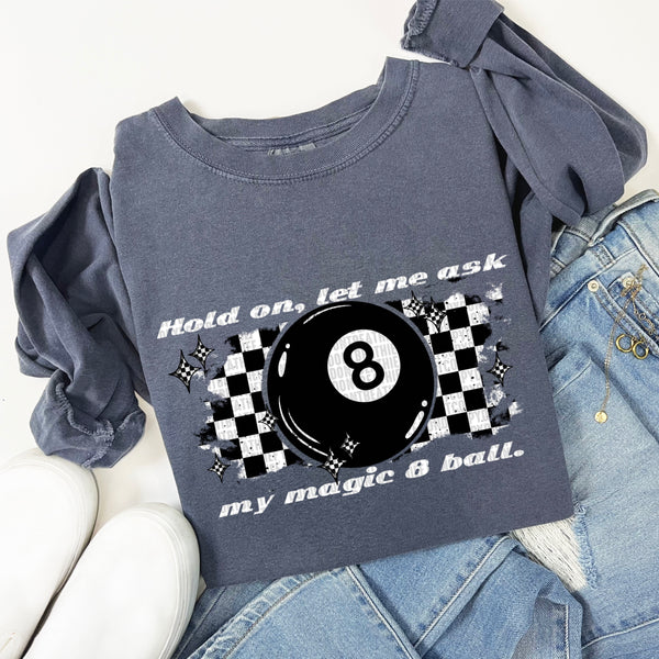 Hold On, Let Me Ask My Magic 8 Ball Checkered Black Font 104286 DTF transfer