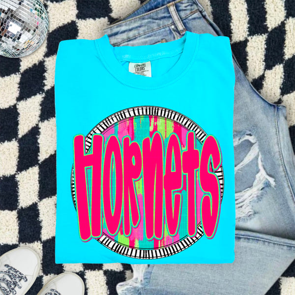 Hornets pink font circle 103909 DTF transfer