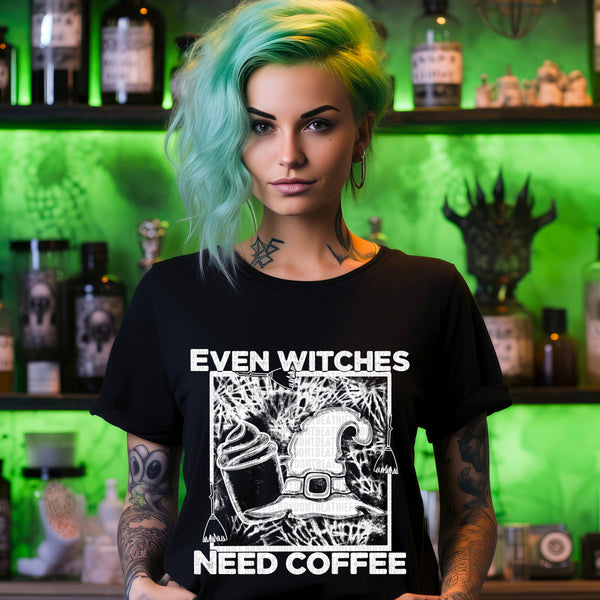Even Witches Need Coffee Square White 104092 DTF transfer