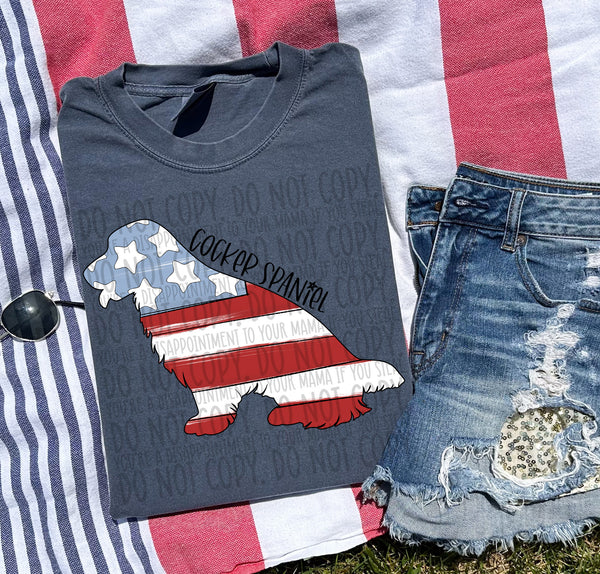 COCKER SPANIEL patriotic black (SWD) DTF transfer