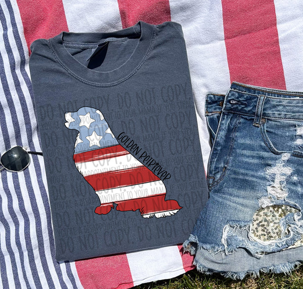 GOLDEN RETRIEVER patriotic black font (SWD) DTF transfer
