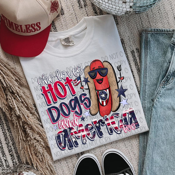 She loves hot dogs and America (SWD) 96340 DTF transfer