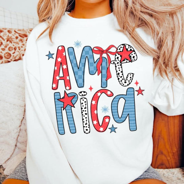American white font Patriotic bows (CSC) 95738 DTF transfer