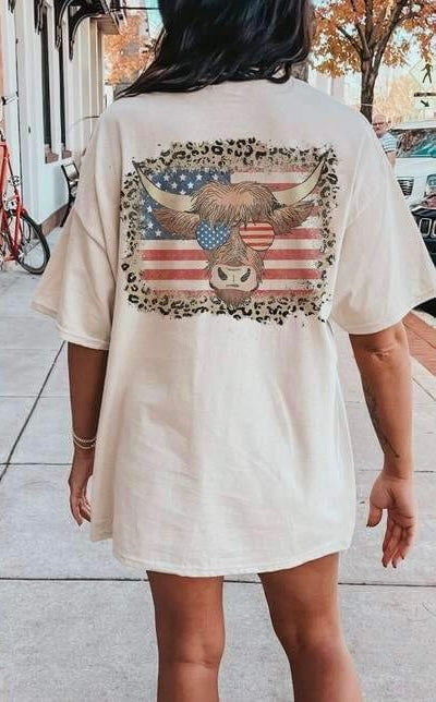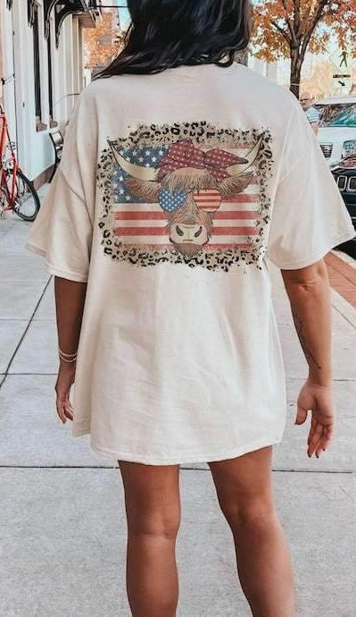 Cow with red head band flag and leopard background 26868 DTF transfer