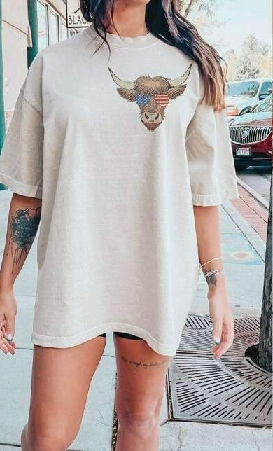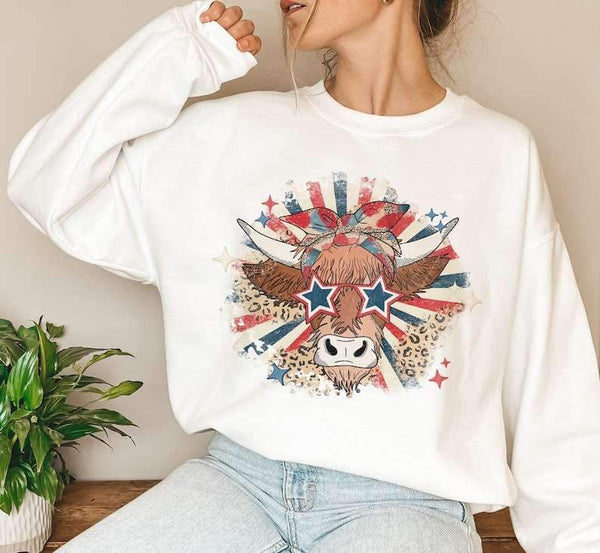 Cow with patriotic glasses and red head band 26871 DTF transfer