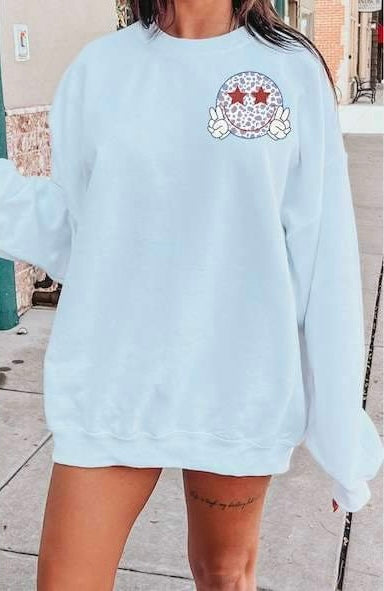 Smiley with red star eyes and peace signs 26876 DTF transfer