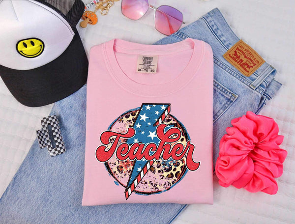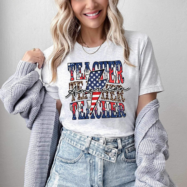 American teacher stacked patriotic bolt 25926 DTF transfer