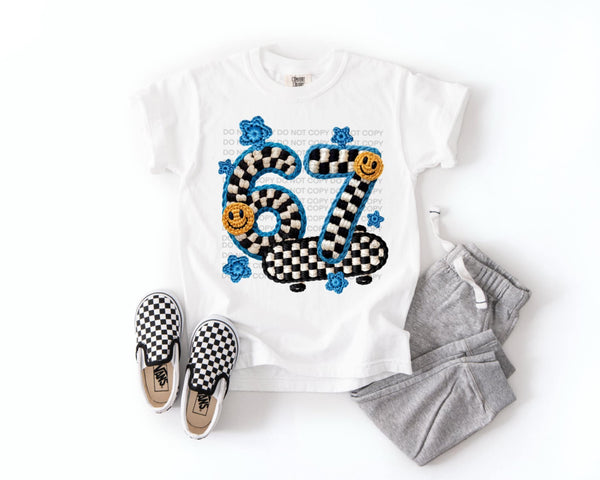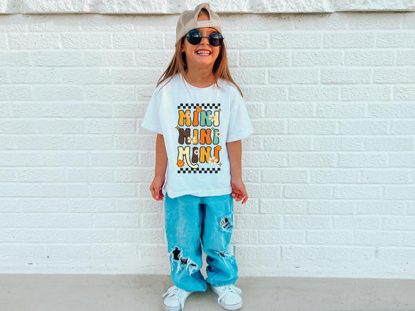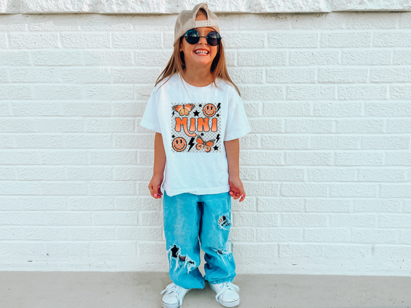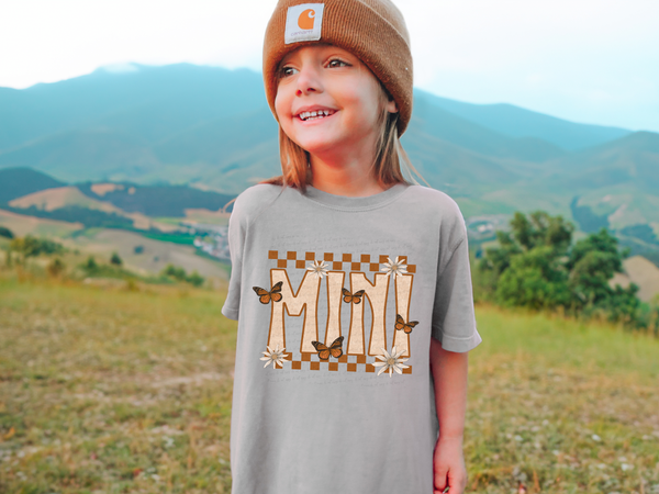 Mini Orange Font Smiley Butterflies Grey Checkered Background 116334 DTF Transfer
