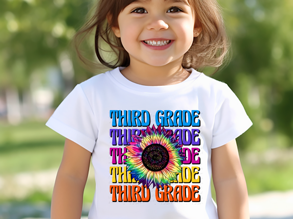 Third Grade Stacked Tie Dye Sunflower Girl 115949 DTF Transfer