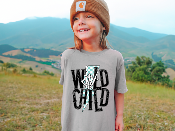 Wild Child Lightning Bolt Blue and White Checkered 116110 DTF Transfer