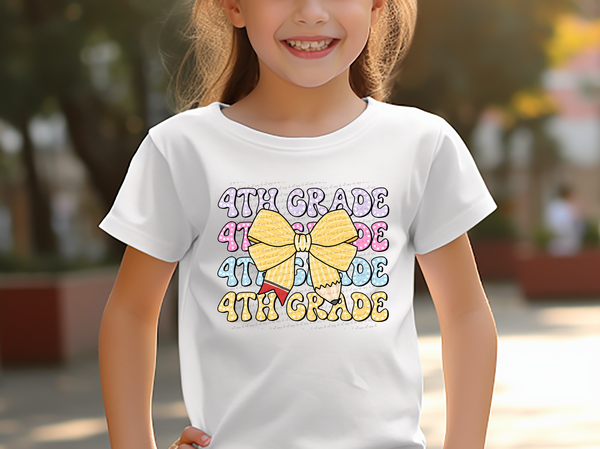4th Grade Word Stacked (Pencil Bow) 42249 DTF transfer