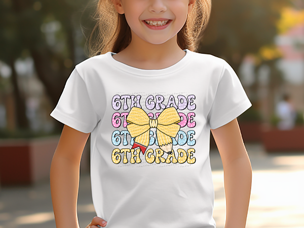 6th Grade Word Stacked (Pencil Bow) 42251 DTF transfer