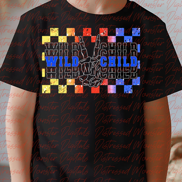 Wild Child Blue Peace Sign checker 111699 DTF transfer