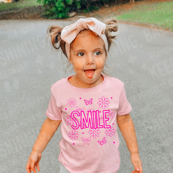 Smile Butterflies and flowers 111695 PINK DTF transfer