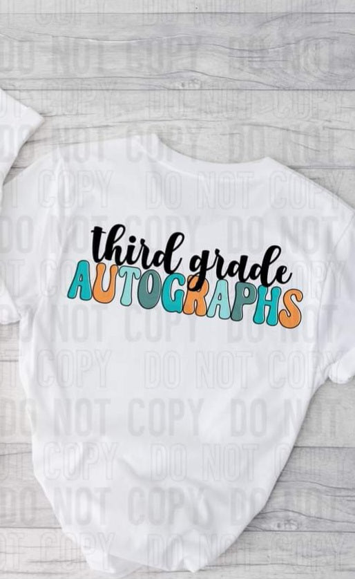 Third Grade Autographs Greens and Blue and yellow DTF TRANSFER