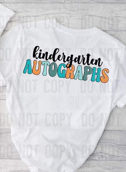 Kindergarten Autographs Greens and Blue and yellow DTF TRANSFER