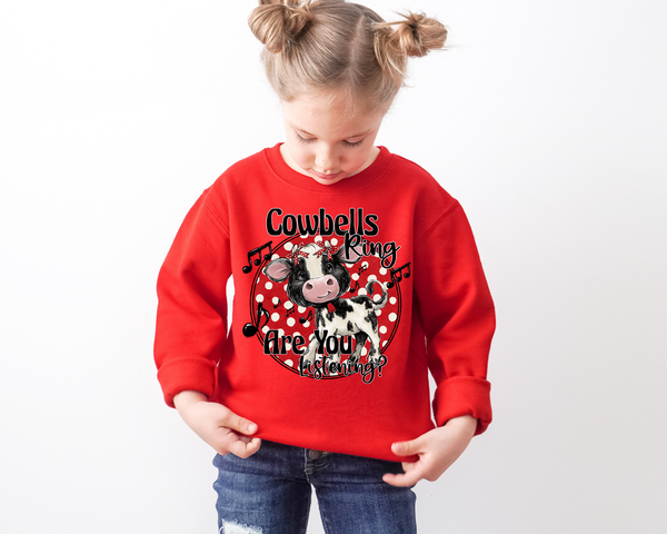 Cowbells Ring Are You Listening Cow Music Notes (Black Font) 8556 DTF TRANSFER