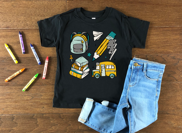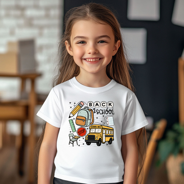Back 2 School - Pencil Bag Ruler Chair Notes School Bus 104811 DTF transfer