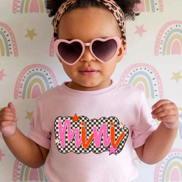 Preschool Groovy Checkered Floral And Stars 108729 DTF transfer