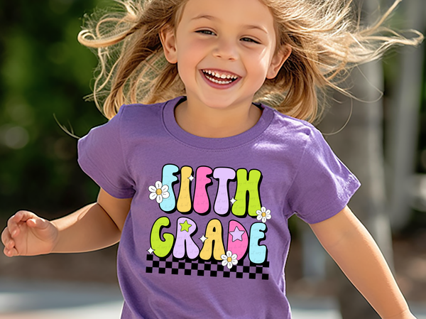 Fifth Grade Groovy Checkered Floral And Stars 108725 DTF transfer