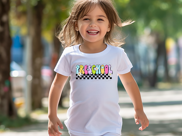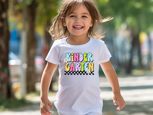 Kindergarten Groovy Checkered Floral And Stars 108728 DTF transfer