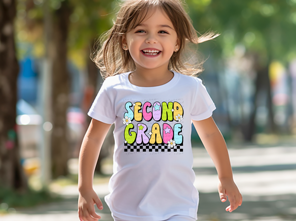 Second Grade Groovy Checkered Floral And Stars 108731 DTF transfer