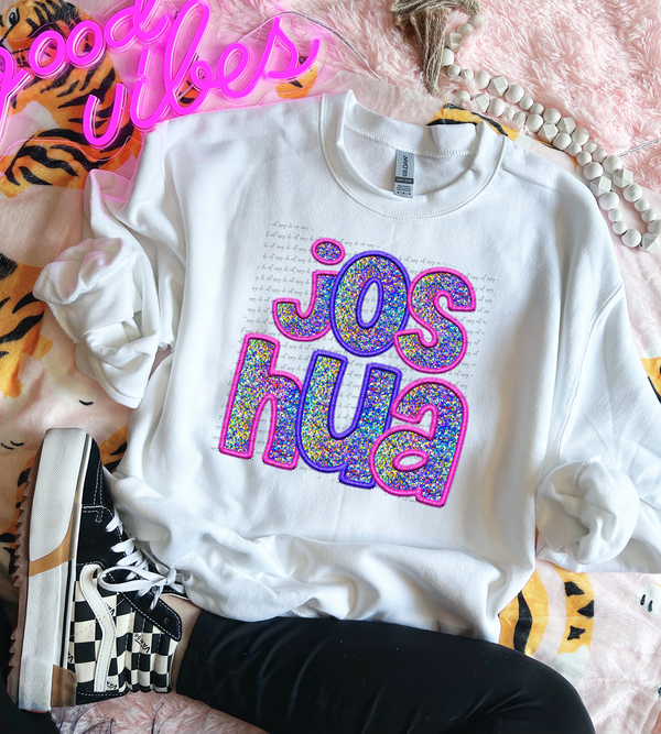 Joshua Faux Embroidery Pink Blue 76064 DTF Transfer