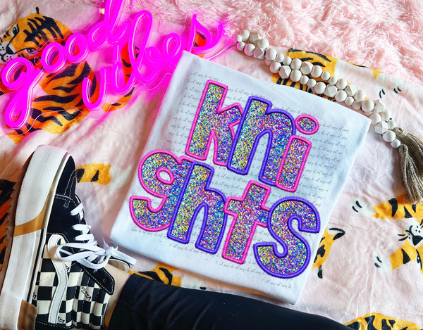 Knights Faux Embroidery Pink Blue 76066 DTF Transfer
