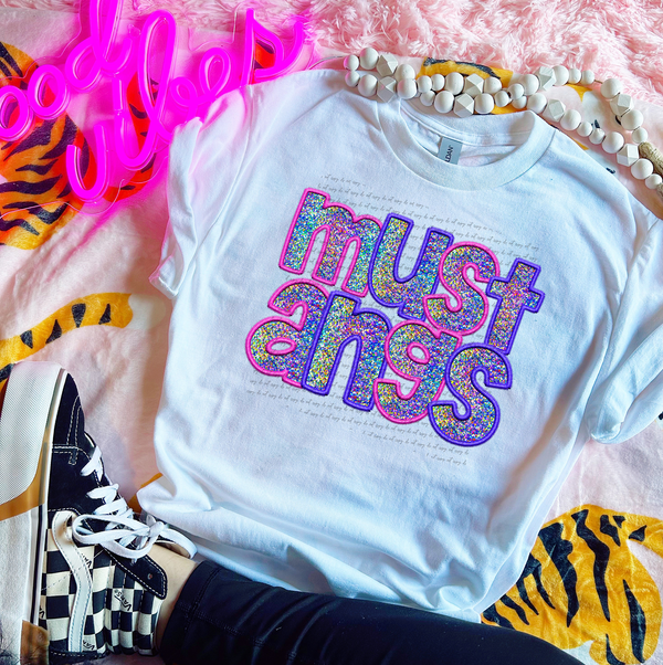 Mustangs Faux Embroidery Pink Blue 76071 DTF Transfer