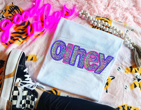 Olney Faux Embroidery Pink Blue 76073 DTF Transfer