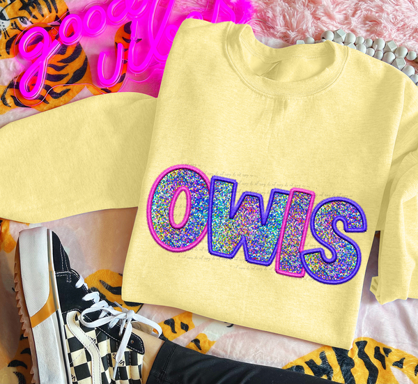Owls Faux Embroidery Pink Blue 76074 DTF Transfer