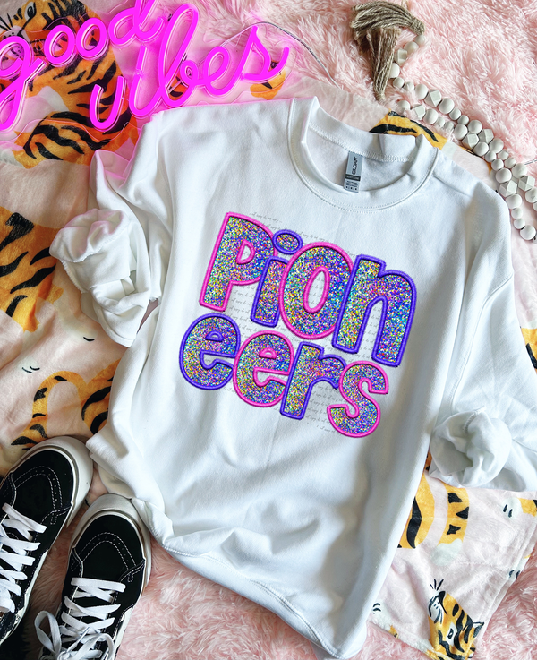 Pioneers Faux Embroidery Pink Blue 76077 DTF Transfer