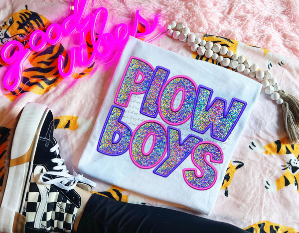 Plowgirls Faux Embroidery Pink Blue 76080 DTF Transfer