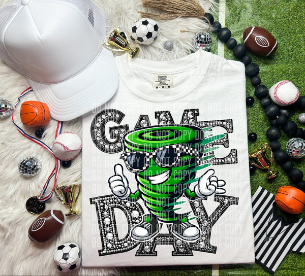 Game Day Silver Rhinestones Checkered Cyclone 54631 DTF transfer