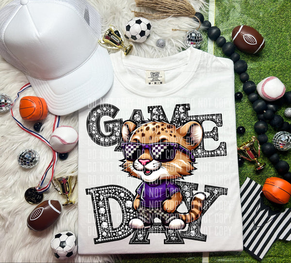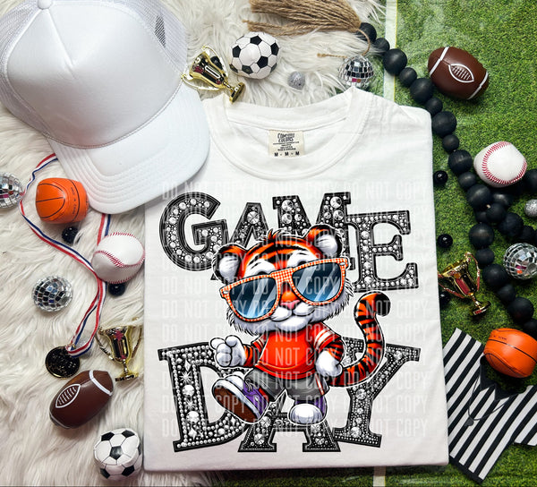 Game Day Silver Rhinestones Checkered Tiger 54635 DTF transfer