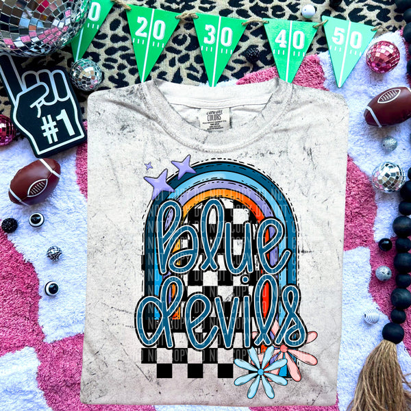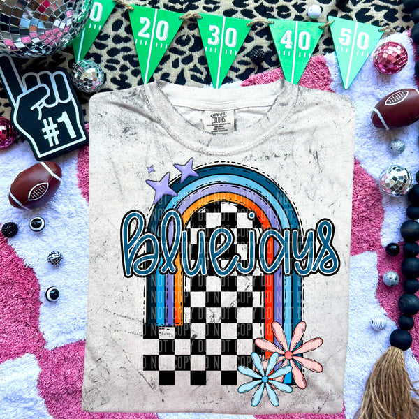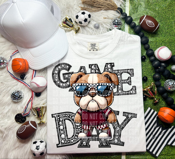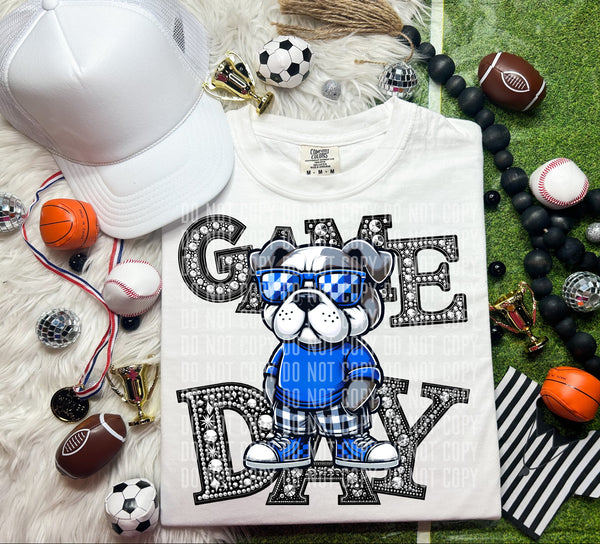 Game Day Silver Rhinestones Checkered Bulldog Blue Shirt 54625 DTF transfer