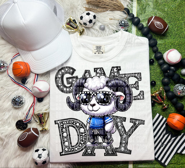Game Day Silver Rhinestones Checkered Sheep 54627 DTF transfer