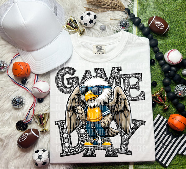 Game Day Silver Rhinestones Checkered Eagle 54634 DTF transfer