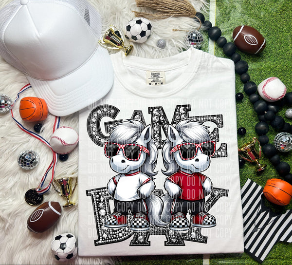Game Day Silver Rhinestones Checkered 54626 DTF transfer