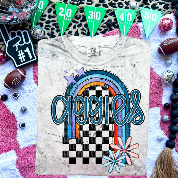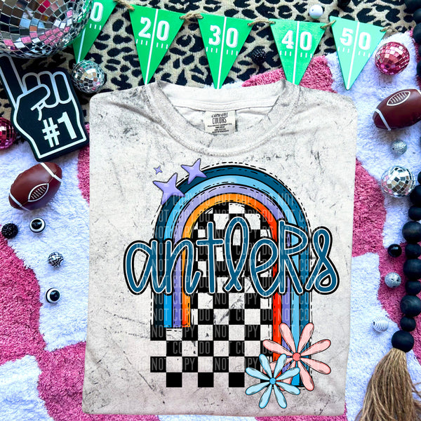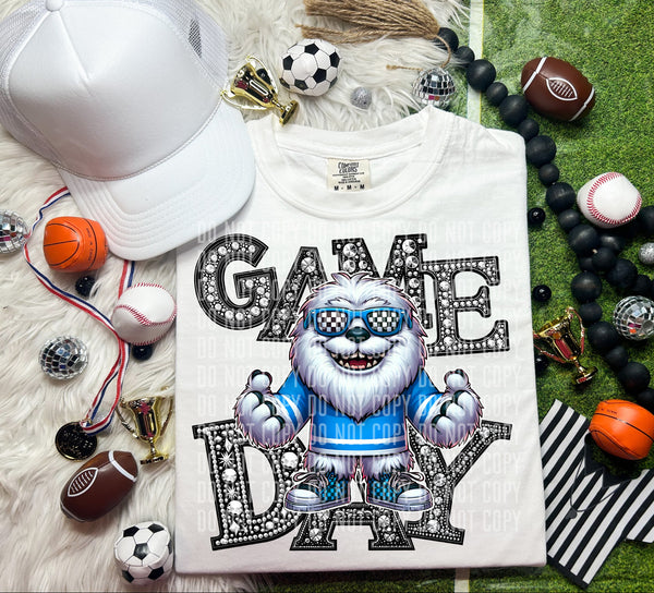 Game Day Silver Rhinestones Checkered Furry Blue 54630 DTF transfer