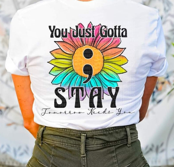 You just gotta stay tomorrow needs you colorful sunflower semi colon black font DTF transfer