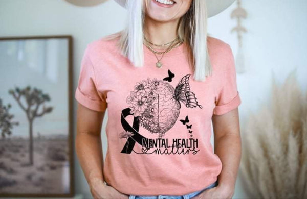 Mental health matters BLACK with butterflies/flowers/ribbon/brain DTF TRANSFER